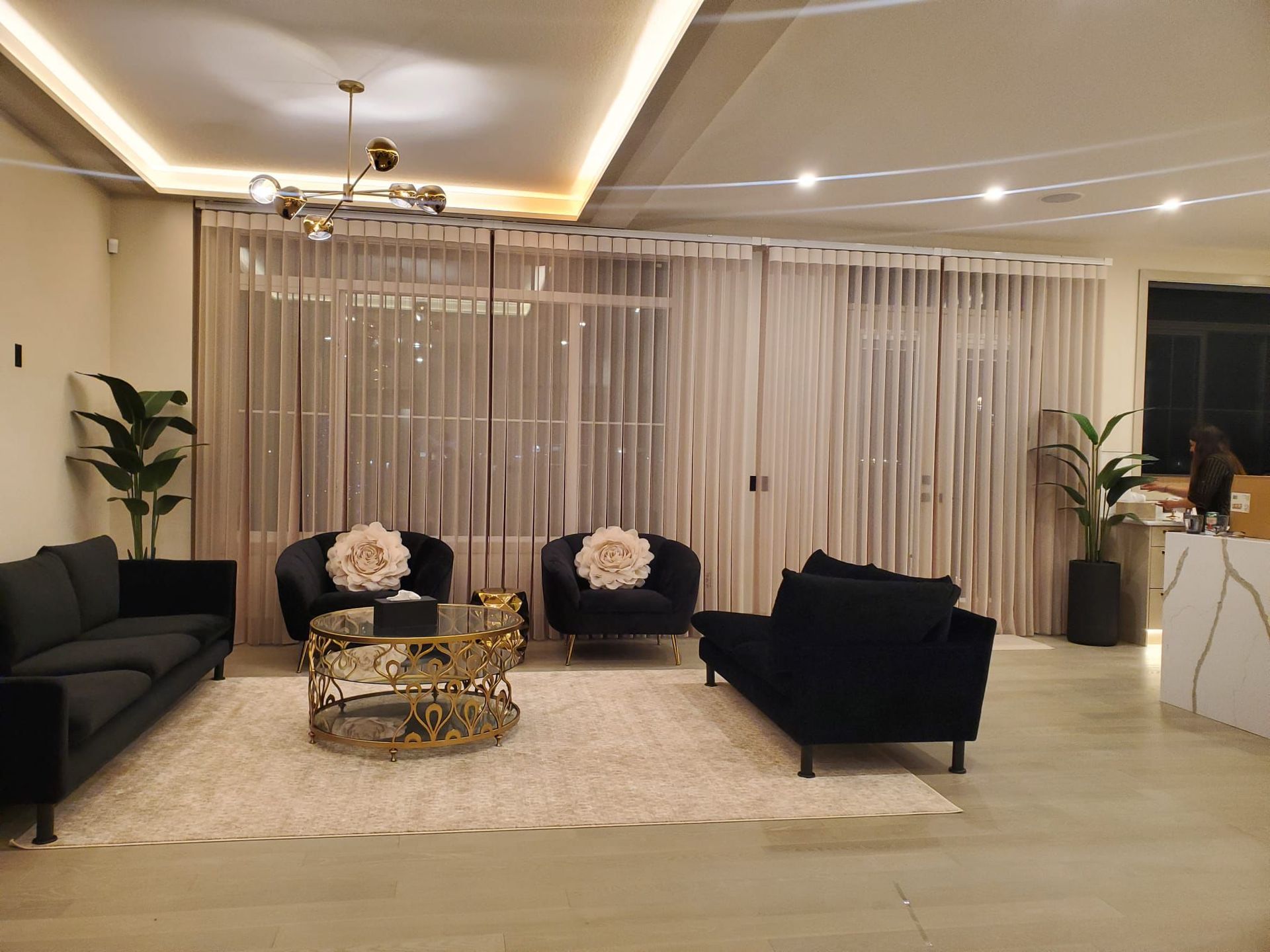 - Reflective Surfaces: Glass tables, metallic accents, and glossy finishes bounce light around.